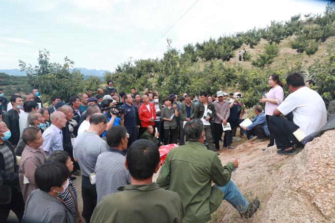 2020年9月4日,河北省板栗高效管理技术(青龙)培训班在我校板栗新品种、新技术示范点——青龙满族自治县栗之源种植专业合作社板栗园举办。本次培训由河北省山区科技创新中心主办,我校与河北省板栗产业技术创新战略联盟承办。河北省山区科技创新中心调研员郭卫平、李毅,青龙县发改局副局长王新伟,我校科研处、乡村振兴研究中心、园艺科技学院、农学与生命科技学院有关专家,青龙县、抚宁区、海港区、迁安市等地市板栗技术骨干、栗农共计300余人参加了培训。