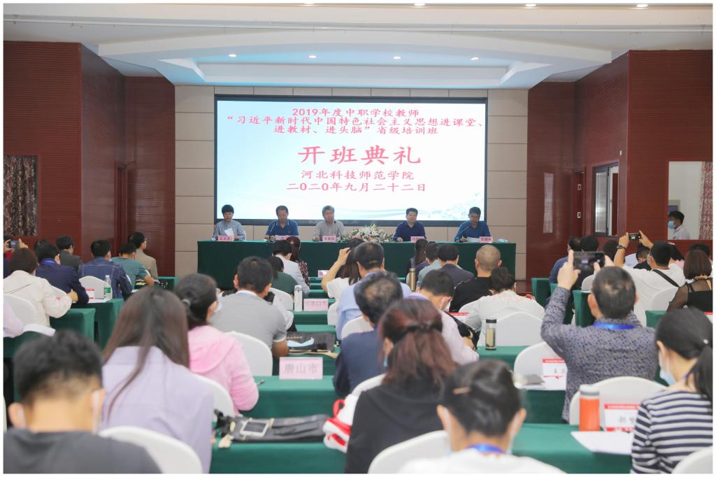 9月22日上午,河北省中等职业学校教师“习近平新时代中国特色社会主义思想‘进课堂、进教材、进头脑’培训班”开班典礼在我校秦皇岛校区举行。校党委副书记李佩国、副校长冯瑞银出席开班典礼,继续教育学院和思想政治理论教学部负责人、培训班管理人员以及来自河北省87所中等职业学校的93名学员参加了开班典礼。