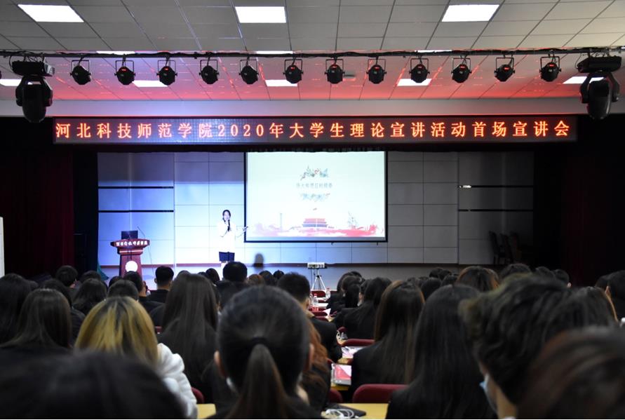 今年10月,为深入学习贯彻习近平新时代中国特色社会主义思想,充分发挥朋辈教育优势,校党委宣传部、党委学工部、校团委、思政部联合开展了“河北科技师范院2020年大学生理论宣讲活动”,并以公开招募的方式面向全校青年学生选拔理论宣讲员,经过前期选拔培训,共有27名优秀学生入选为我校2020年大学生理论宣讲员,同时我校思想政治理论教学部杜立文、樊东霞、曹凤珍3名博士教师被聘为宣讲活动指导教师。