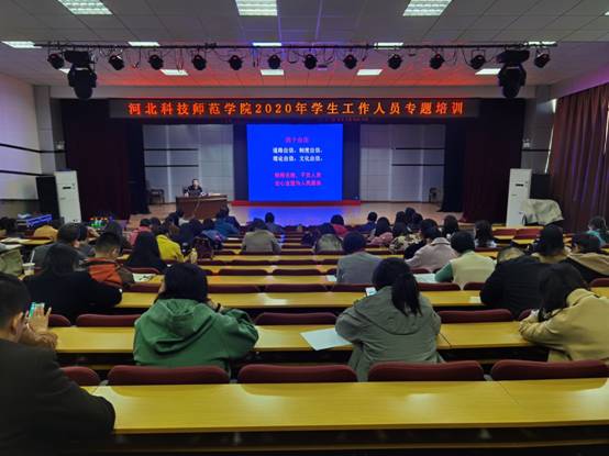 2020年11月13日,我校在秦皇岛校区举办学生工作人员专题培训,学生处、团委全体工作人员、全体专职辅导员、兼职班主任代表参加了本次专题培训。