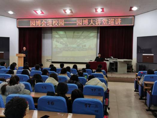 2020年11月19日,根据河北省第四届(邯郸)园林博览会活动安排,由河北省住房城乡建设厅、河北省教育厅、共青团河北省委员会、邯郸市人民政府共同主办,我校协办的2020年河北省大学生风景园林文化节——园博大讲堂巡讲及巡展活动在我校昌黎校区学术报告厅举行。本次活动采用线上演讲、线下集中观看的方式进行,园艺科技学院相关负责同志出席活动并致辞,园林、风景园林专业带头人、教学部主任以及园林、风景园林专业全体师生近300人到场听取报告。