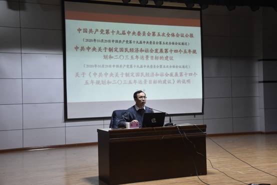 河北团省委“走基层”宣讲团成员、河北青年讲师团团长柴勇以《开启全面建设社会主义现代化国家新征程》为题进行宣讲,从《中共中央关于制定国民经济和社会发展第十四个五年规划和二〇三五年远景目标的建议》的整体架构入手,从立足新发展阶段、贯彻新发展理念、构建新发展格局三个“新”方面对五中全会的核心要义进行了全面、深刻、透彻的解读,并以大量实例激励广大青年学生要认真学习好全会精神,找准自身定位,把握机遇,树立远大志向,练就过硬本领,把个人价值实现融入全面建设社会主义现代化国家新征程的大局之中,充分发挥生力军和突击队的作用,砥砺前行,开拓创新,在新征程上谱写新时代的青春华章。(编辑:孙艳敏 审核:赵宗宝)