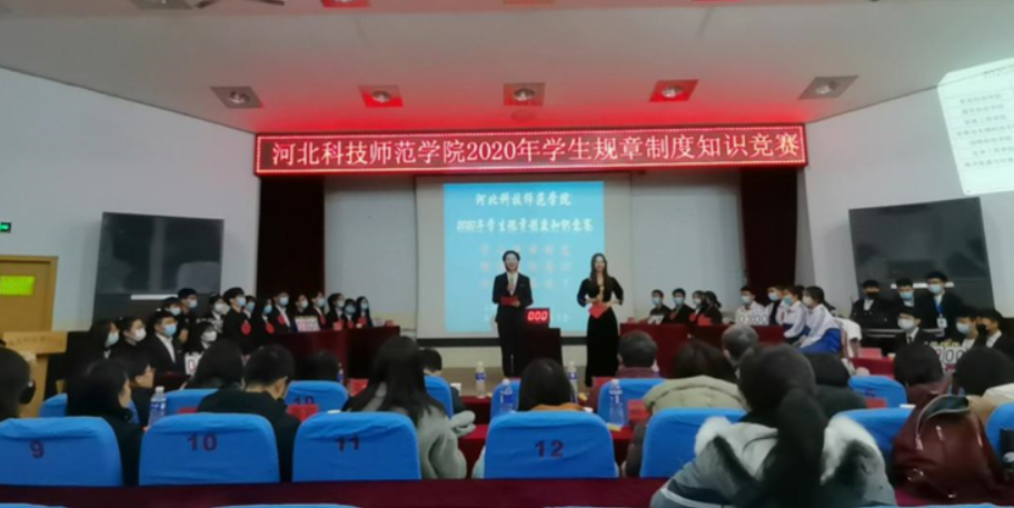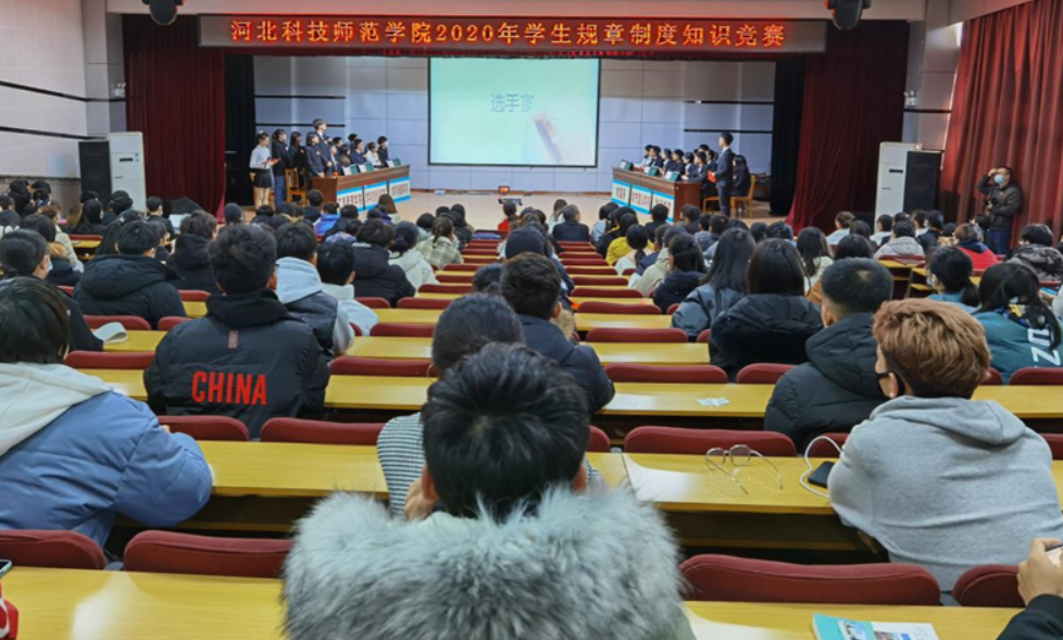 2020年12月11日下午,我校在秦皇岛、昌黎、开发区三个校区同时举办2020年学生规章制度知识竞赛。学生处、团委有关负责人及工作人员、各学院(系)学生工作主管领导、有关辅导员(班主任)、2020级新生代表等300余人在三个校区观看了比赛。