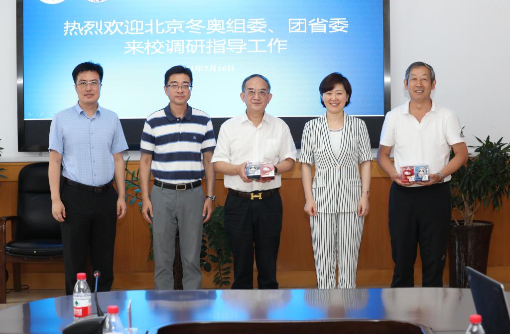 7月16日上午,北京冬奥组委志愿者部副部长张秀峰、张丽娜,团省委副书记孙贺一行到我校调研2022年北京冬奥会和冬残奥会志愿者工作。校党委书记任民、党委副书记兰耀东出席见面会,学工部、教务处、校团委、体育与健康学院、外国语学院等单位负责同志参加调研座谈。