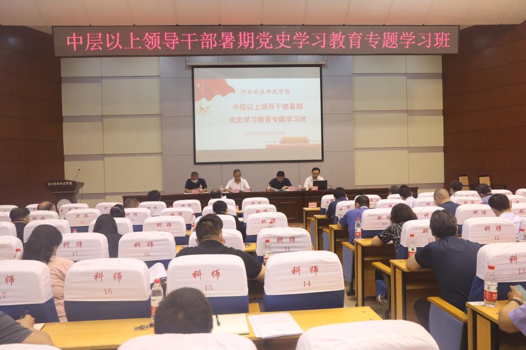 近日,我校在秦皇岛校区举办中层以上领导干部暑期党史学习教育专题学习班。根据疫情防控要求,本次学习班采用线上培训+分单位学习讨论的形式进行。全体校领导、职能部门处级干部以及党委组织部、宣传部全体工作人员在主会场参会,其他教学单位、教辅科研单位中层领导在各自单位线上参会。
