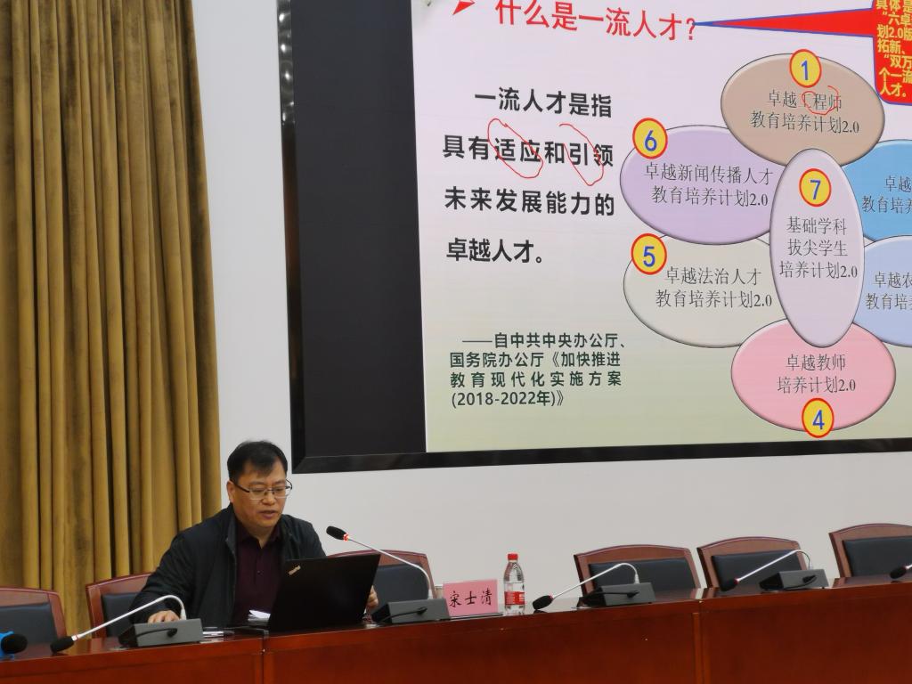 2021年10月12日,我校宋士清教授接受邀请参加河北大学100周年校庆——首届“本科教学质量文化周”活动并作题为“打造一流课程,培养一流人才”的主题报告。河北大学党委副书记杨立海主持了报告会。