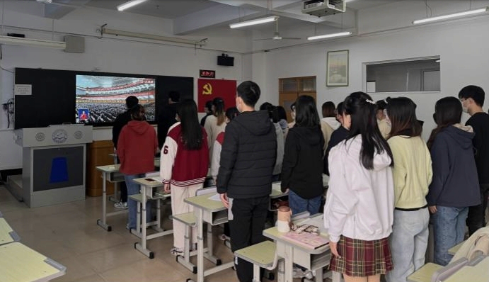 党的二十大是我们党进入全面建设社会主义现代化国家、向第二个百年奋斗目标进军新征程的重要时刻召开的一次十分重要的代表大会,是党和国家政治生活中的一件大事。在观看现场,广大师生边看边做好记录,会场不时响起热烈的掌声。