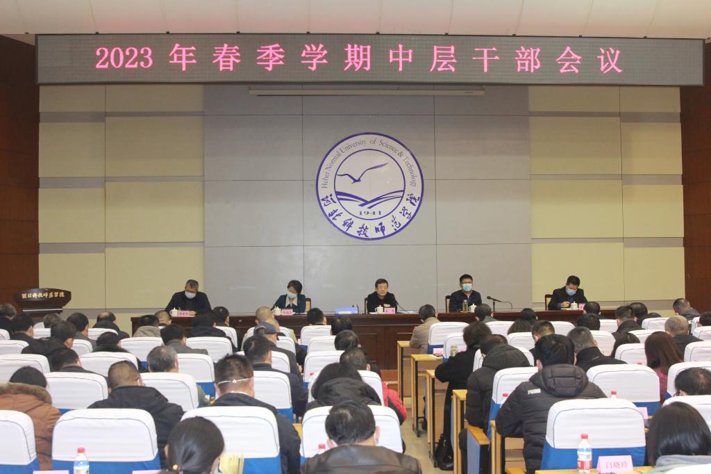 2月23日下午,我校在秦皇岛校区学术交流中心召开春季学期中层干部大会,进一步统一思想、凝心聚力,确保2023年各项工作起好步、打好底、开好局。校党委书记朱勇在会上讲话,校党委副书记、校长郭旭涛总结2022年主要工作并部署2023年春季学期重点工作。校领导杨越冬、冯瑞银、蒋爱林出席会议,全体中层干部参加会议。会议由副校长杨越冬主持。