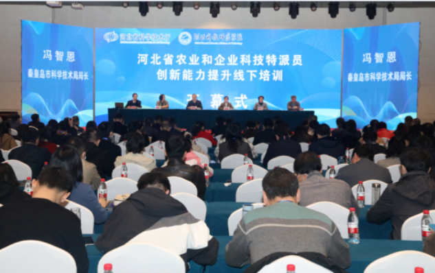 4月8日,由省科技厅主办、我校承办的河北省农业和企业科技特派员创新能力提升培训会在秦皇岛举行。培训采取线上和线下同步进行的方式开展。省科技厅区域创新处处长郑晓兰、副处长白双艳、二级调研员龚成军,各地市科技局领导,我校副校长杨越冬出席会议。省科技厅及各市科技局负责科技特派员工作的人员,优秀科技特派员代表等400余人线下参会,1480名科技特派员线上参会。
