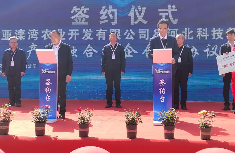 4月15日,我校与河北亚滦湾农业开发有限公司校企合作协议签约仪式在迁安亚滦湾农业公园举行,我校乡村振兴研究中心主任常学东、园艺科技学院副院长武军凯、迁安桃产业专家工作站首席专家肖啸教授出席了签约仪式。