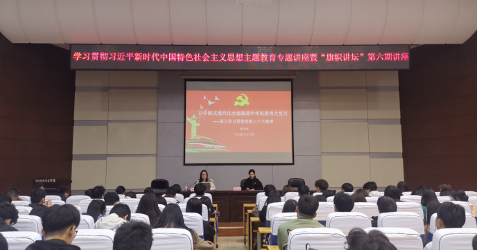 本次讲座是落实我校扎实推进学习贯彻习近平新时代中国特色社会主义思想主题教育工作部署的一项重要活动。从本期开始,旗帜讲坛将结合我校学习贯彻习近平新时代中国特色社会主义思想主题教育推进需要,安排系列不同专题讲座,深刻全面阐释习近平新时代中国特色社会主义思想,浓厚我校主题教育学习宣传氛围,强化马克思主义阵地建设,不断推进我校学习贯彻习近平新时代中国特色社会主义思想主题教育走深走实,引导广大师生深刻领悟“两个确立”的决定性意义,增强“四个意识”,坚定“四个自信”,做到“两个维护”,切实把习近平新时代中国特色社会主义思想转化为坚定理想、指导实践、推动学习工作的强大力量。(编辑:孙艳敏 审核:赵宗宝)