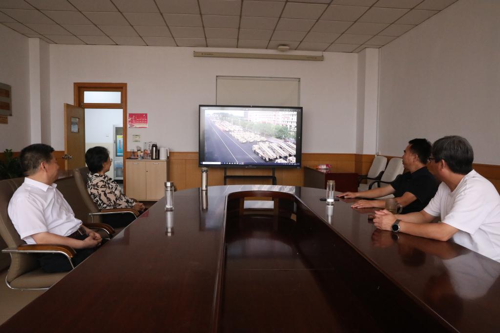 收看现场气氛庄重,师生员工精神饱满、姿态端正。当雄壮的国歌响彻天安门广场,现场师生自发肃立齐声高唱,饱含对祖国的崇敬与自豪。阅兵仪式中,当一支支阅兵方队整齐地走过天安门广场,一排排精良武器装备展现在师生眼前,强大的阵容、恢弘的气势,让观看大会盛况的师生热血沸腾、心潮澎湃,不时响起阵阵热烈掌声。