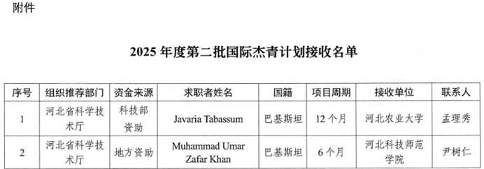 近日,我校动物科技学院申报的国际杰青计划项目成功获批科技部2025年度第二批发展中国家杰出青年科学家来华工作计划(以下简称“国际杰青计划”)项目资助,巴基斯坦费萨拉巴德农业大学的助理教授Muhammad Umar Zafar Khan博士将在该项目的支持下到我校进行为期6个月的合作研究。