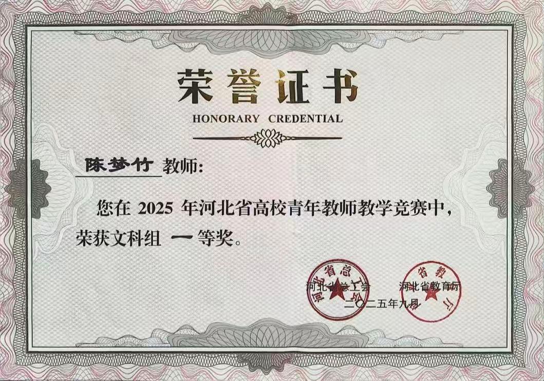 喜报 | 陈梦竹老师斩获河北省高校青年教师教学竞赛一等奖,实现“校-市-省”竞赛三连冠