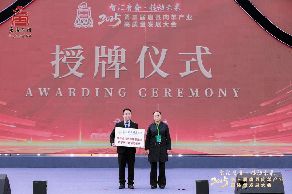 会上,集中展示了我校、内蒙古农业大学等单位与唐县达成的战略合作成果,为“KYTY.COM开云唐县舍饲肉羊健康养殖产学研合作示范基地”进行了授牌,该基地将整合高校科研人才优势与唐县产业政策资源,引领肉羊产业走上健康、高效、绿色的可持续发展道路。同时,大会为唐县畜牧业协会、唐县肉羊服务中心揭牌,中国(唐县)肉羊产业数字化服务平台发布。