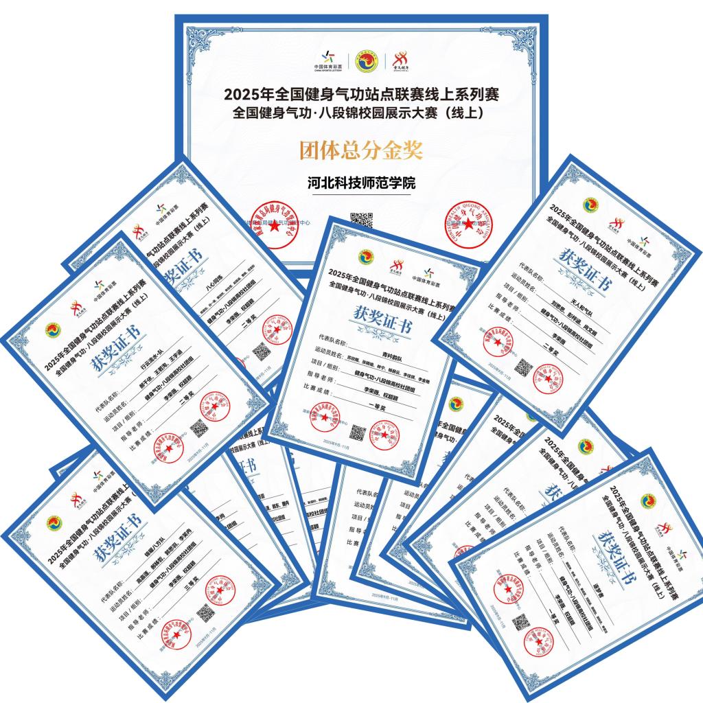 11月5日,2025年由国家体育总局健身气功管理中心、中国健身气功协会联合主办全国健身气功·八段锦校园展示大赛(线上)成绩通过“中国健身气功协会”官方平台正式公布。我校共14支队伍参与高校组比赛,凭借精湛的功法展示、昂扬的精神风貌,在全国众多参赛队伍中脱颖而出,成功摘得高校组金奖,为学校赢得荣誉。