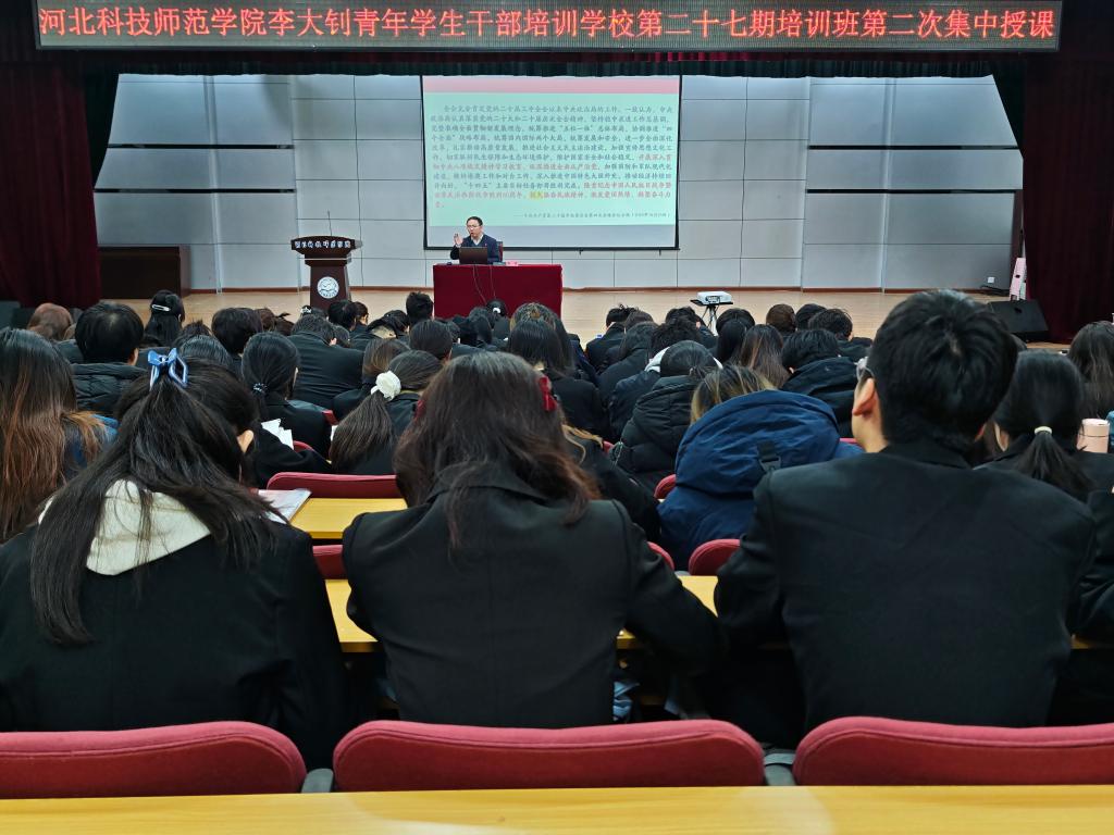 近日,我校李大钊青年学生干部培训学校第二十七期培训班邀请燕山大学马克思主义学院院长柴勇作题为《奋力开创中国式现代化建设新局面——学习党的二十届四中全会精神》专题报告。校团委全体成员、李大钊干校全体学员参加了报告会。