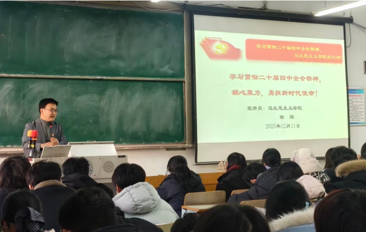 为深入学习贯彻党的二十届四中全会精神,切实引导师生将思想和行动统一到党中央决策部署上来,近日,农学、食品、动科、化工四学院党委联合举办党的二十届四中全会精神专题宣讲会。本次宣讲特邀学校思想政治理论教育宣讲团成员、马克思主义学院田辉老师主讲。四个学院师生代表通过系统学习深刻领会全会精神的实践内涵与时代价值。