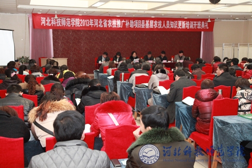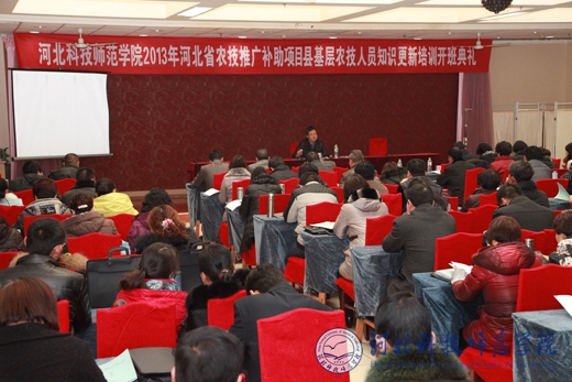 2013年12月7日上午,我校承办的“2013年河北省农技推广补助项目——县基层农技人员知识更新培训重点班”开班典礼隆重举行。农业部科教司技术推广处处长王青立、河北省农业厅科教处处长刘魁、我校副校长杨越冬、科研处处长闫立英、继续教育学院院长赵宝柱、继续教育学院党委书记贾利田出席了开班典礼。典礼由赵宝柱院长主持。