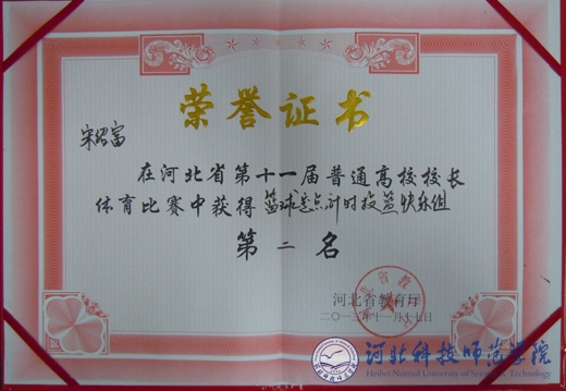 近日,由河北省教育厅主办的河北省第十一届普通高校校长体育比赛在河北体育学院举行。比赛设乒乓球、羽毛球、篮球定点计时投篮、足球过杆射门等项目,全省有35所普通高校的155名校领导参加比赛。我校由党委书记辛彦怀、党委副书记宋绍富、党委常委李佩国组成的代表队参加了部分项目比赛并取得良好成绩。辛彦怀书记获得篮球定点计时投篮快乐组第一名,宋绍富副书记获得篮球定点计时投篮快乐组第二名,李佩国常委获得篮球定点计时投篮健康组第三名。(编辑:孙艳敏 审稿:赵建平)