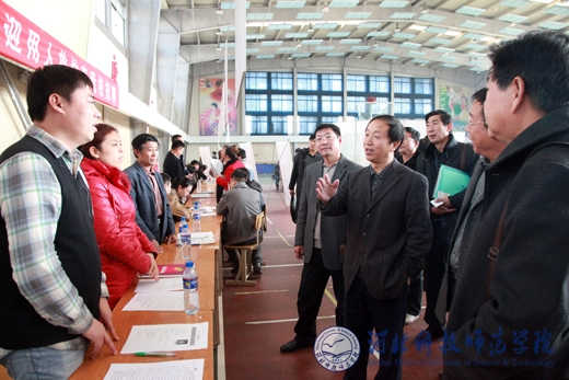 2013年11月22日至23日,我校在昌黎校区、秦皇岛校区、开发区校区、欧美学院校区分别举办了2014届毕业生分院(系)专场校园招聘会。校党委书记辛彦怀、党委副书记宋绍富,党委常委、副校长郭国维,党委委员、副校长张福喜,校长助理高书国等领导到招聘会现场检查指导工作。