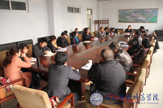 校长王同坤在调研中听取外国语学院汇报