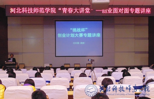 2013年11月2日,由校团委主办的“青春大讲堂”—创业面对面专题讲座在秦皇岛校区学术报告厅举行。东北大学秦皇岛分校经贸学院院长柳彬德教授和我校“挑战杯”指导教师、原副校长付兴国教授作专题讲座。来自四个校区的400余名同学聆听了讲座。