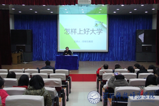 2013年10月31日,原河北医科大学党委副书记陈继生教授先后到我校外国语学院、工商管理学院作题为《怎么样上好大学》的专题讲座。外国语学院、工商管理学院的专职辅导员、学生党员、入党积极分子及2013级新生听取了讲座。