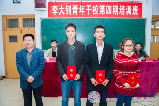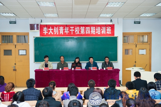 为把学习党的十八大精神活动引向深入,引导青年学生干部进一步树立坚定的共产主义信念,激励新一代大学生为实现“中国梦”奋勇前进,不断打造一支品德高尚、成绩优秀、作风过硬、能力突出的青年学生干部队伍。2013年10月19日,由校党委学工部、党委宣传部、团委共同举办的李大钊青年学生干部学校第四期培训班在昌黎校区举行。李大钊干校副校长、党委学工部部长冯瑞银,团委书记于海印,思政部教师、李大钊精神研究会指导老师王向华、李文玲、王炳义出席了此次活动。我校80名学生干部骨干参加了此次培训。