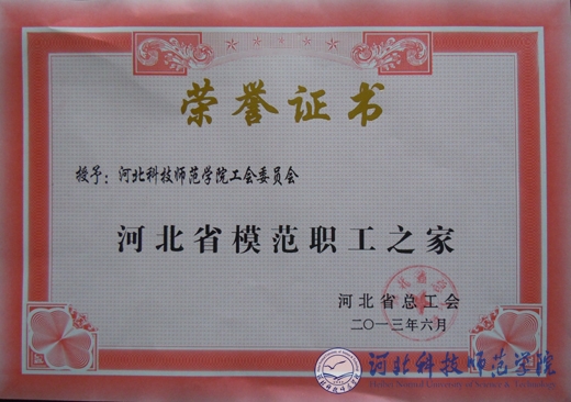 近期,我校工会被河北省总工会授予“模范职工之家”荣誉称号。(编辑:孙艳敏 审稿:田 毅)
