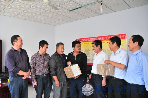 我校与蔚县签订科技合作协议后,科研处和生命科技学院积极行动起来,大力支持蔚县发展现代农业产业并配合驻村工作组开展科技帮扶工作,2013年9月11日,科研处邀请园艺专家边卫东为蔚县草莓种植户传授了草莓栽培技术,生命科技学院邀请食用菌专家侯东军为食用菌栽培户传授了食用菌栽培技术。生命科技学院党委书记贠小波,院长宋世清,副院长乔亚科,副书记、副院长孟庆东代表生命科技学院慰问了我校两个驻村工作组,并为我校帮扶村蔚县邢家庄村和南董庄村捐赠了价值2800余元的农业生产技术书刊。(图片:杨宗泽) (编辑:孙艳敏 审稿:田 毅)