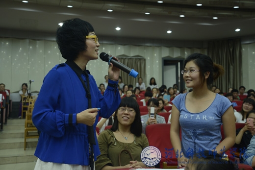 2013年9月13日晚上,艺术学院邀请中国戏剧学院雪小禅教授作题为“感悟艺术人生”的专题讲座。艺术学院党委书记王旭民、院长张海燕、副院长程学勇、副书记、副院长王志安及全体师生聆听了本次讲座。讲座中,雪小禅教授指点学生怎样面对学习、爱情、生活与挫折,如何走好人生的每一步,并一一解答了同学们提出的问题,她的精彩演说不时激起阵阵掌声。最后,王旭民书记向同学们提出希望和要求,希望同学们勤奋学习、努力拼搏,走好自己的艺术人生。(编辑:孙艳敏 审稿:田 毅)