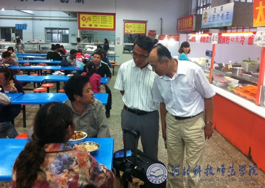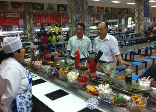郭国维副校长实地考察秦皇岛校区食堂情况(右一)