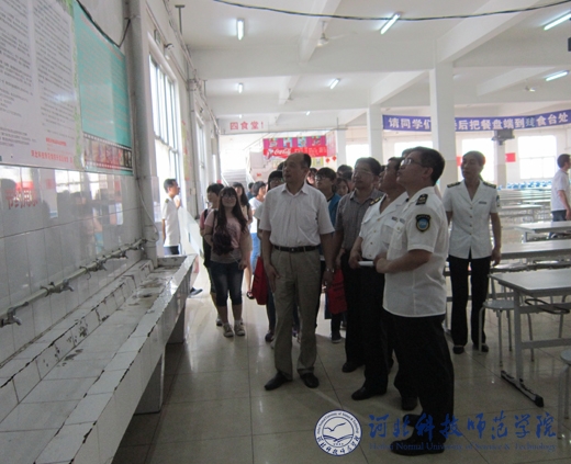 秦皇岛市食品药品监督管理局工作人员现场检查我校食堂“五常·六T”管理模式的具体落实情况