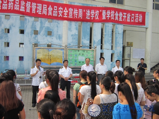 6月27日下午,由秦皇岛市食品药品监督管理局开展的“食品安全宣传周‘进学校’暨学校食堂开放日”活动在我校开发区校区正式启动。市食品药品监督管理局副局长肖峻岭与各相关科室工作人员来到活动现场,就食品安全知识向师生代表进行了宣传与讲解。我校党委常委、副校长郭国维,开发区校区办主任王旭民,后勤服务总公司副总经理苏小滨出席了此次活动。