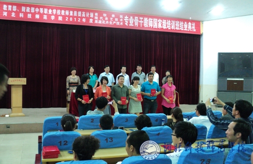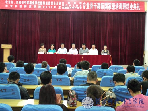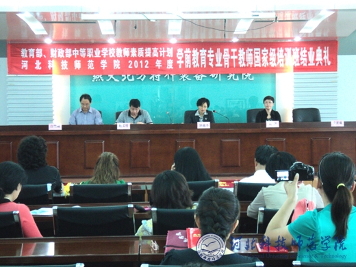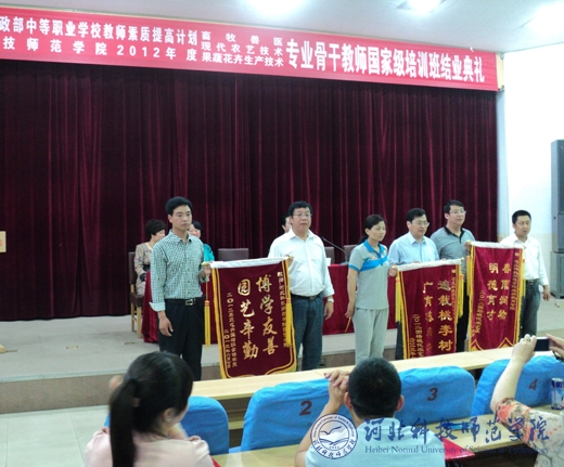近日,我校承办的教育部、财政部中等职业学校教师素质提高计划2012年度国家级骨干教师培训班顺利结业。6月6日,学前教育专业国培班结业典礼在秦皇岛校区举行。7日,畜牧兽医、现代农艺技术和果树花卉生产技术专业国培班结业典礼在昌黎校区举行。房海副校长和杨越冬副校长分别出席结业典礼并讲话。继续教育学院、教育学院、动物科技学院、生命科技学院和园艺科技学院领导,相关教师,管理人员和国培班学员137人参加了结业典礼。结业典礼由继续教育学院副院长刘超主持。