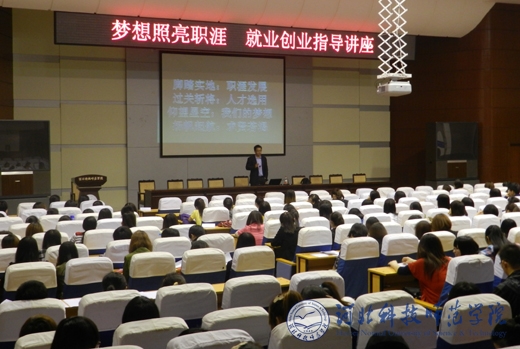 2013年5月23日晚,财经学院邀请清华大学MBA、2013年创意中国大赛全球八强、北京江海云霄教育与科技有限公司董事长胡宇东来我校作题为《梦想照亮职涯》的就业创业指导讲座。财经学院300余名师生参加了本次讲座。讲座由财经学院辅导员肖艳主持。