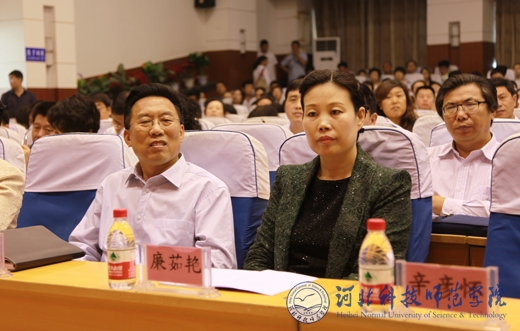 秦皇岛市副市长廉茹艳,我校党委副书记、校长王同坤在听取报告