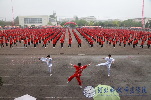 开幕式上,细雨绵绵,场面壮观。全体运动员生龙活虎,斗志昴扬。伴随着嘹亮的口号声,运动员迈着矫健的步伐进行了精彩的入场式表演,步调一致的运动员方阵一一通过大会主席台接受检阅。气宇轩昂的国旗护卫队队员身着整齐的服装,迈着有力的步伐,进行了分列式表演,展现了国旗班特有的风貌。进行千人健身操表演的运动员,精神饱满,意气风发,伴随欢快激昂的乐曲,动作整齐划一,姿态优美舒展,展现了当代大学生昂扬向上,活力无限的青春风采。各二级学院分别在开幕上进行了异彩纷呈的特色节目表演。