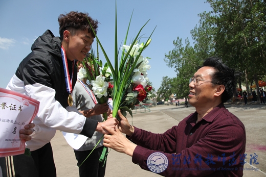 校党委副书记、校长王同坤为获奖运动员颁奖