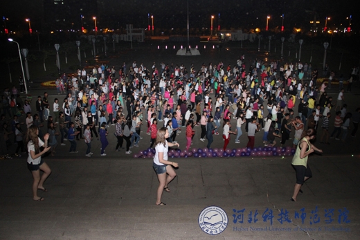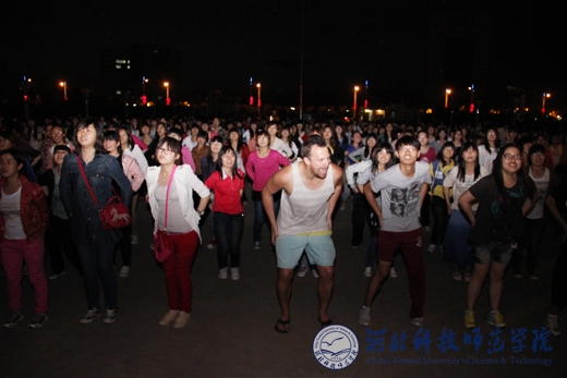 5月10日晚,我校开发区校区沉浸在一片欢乐的海洋中。一千多名学生欢聚在主教学楼前的广场上,听着IECS教师们的口令,伴随着欢快的音乐节奏,尽情地欢笑和舞蹈,为期9天的英语周活动就此达到高潮并圆满落幕。