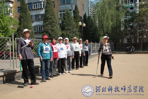 5月16日上午,我校老干部门球联谊赛在新修缮的秦皇岛校区老干部门球场拉开了帷幕。共有6支门球队、42名老干部运动员参加了比赛。校党委副书记宋绍富、组织部部长高书国、离退办主任于洪奎、工会主席毕丹霞、体育系副主任李会增及离退办工作人员参加了开幕式。