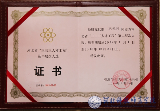 巩元芳教授入选河北省“三三三人才工程”第二层次人选管理序列