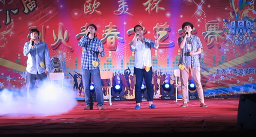 5月17日晚上,欧美学院商务管理系主办的第八届“欧美杯”烈火青春才艺大赛总决赛在学院AB楼广场举行。欧美学院党委书记张俊华、党委副书记张晓军、商务管理系主任卢锡慧及东北大学秦皇岛分校、东北石油大学秦皇岛分校、河北建材职业技术学院的嘉宾和我校师生1000余人观看了比赛。 大赛由燕山大学炫舞堂精彩街舞表演拉开序幕。参加决赛的10组选手在两轮比赛中,通过他们的歌声、舞蹈等才艺充分展现了当代大学生的风采,精彩的节目把比赛气氛频频推向高潮。经过激烈角逐,欧美学院吴逸凡获得第一名,东北大学秦皇岛分校陈天玉获得第二名,我校房基获得第三名,欧美学院Music Holic组合获得最佳人气奖。(编辑:孙艳敏 审稿:田毅)