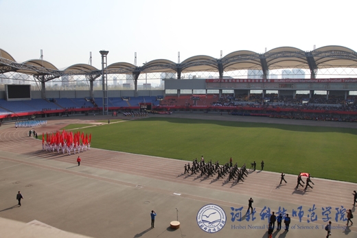 王同坤校长在开幕式致辞中,首先代表学校和大会组委会对我校2013年春季田径运动会的顺利召开表示祝贺,对大会的承办单位和精心筹备运动会的工作人员、教练员,对全体运动员、裁判员表示感谢。对我校上一年度在河北省大学生运动会、河北省大学生武术比赛、河北省太极拳比赛、秦皇岛龙舟大赛等省市级比赛项目上取得的成绩给予了表扬。 他强调,体育是我校教学工作的重要组成部分。体育运动是强健师生体魄、锤炼师生意志、培养合作意识的有效途径。体育运动会不仅是对师生员工竞技运动水平的一次检验,更是对师生日常体育活动开展情况的一次大检阅,既是各单位、各部门体育竞技的交流场所,也是体育文化交融的平台。他希望各参赛单位、全体运动员、裁判员公平竞争,公正裁判,发扬奋勇争先、吃若耐劳、顽强拼搏、团结互助的精神,赛出成绩、赛出水平、赛出友谊、赛出风尚,同时,希望全体师生员工发挥“更快、更高、更强”和“团结、友谊、进步”的奥林匹克精神,为实现梦想,凝聚力量、扎实进取,为不断推进学校各项事业的发展贡献力量。