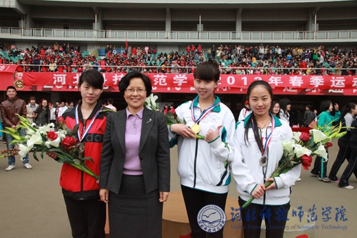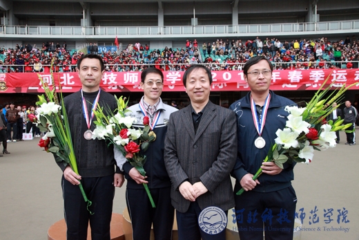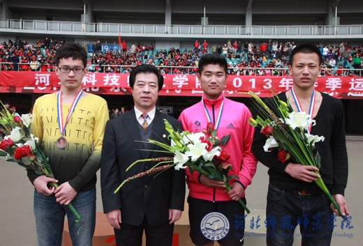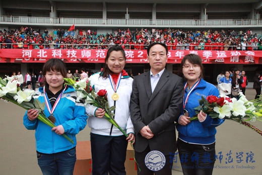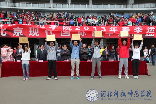 闭幕式上,学校党政领导辛彦怀、王同坤、房海、杨越冬、杨洪青分别为获奖单位和个人颁发了奖牌。房海副校长在大会闭幕式致辞中,代表我校体育运动委员会对分别获得学生甲、乙组团体总分第一名的城市建设学院和体育系体育教育本科1202班,荣获精神文明奖的教育学院、城市建设学院、文法学院、外国语学院、欧美学院商务管理系、欧美学院信息技术系、艺术学院、欧美学院人文艺术系八个单位,荣获教工队优秀组织奖的工商管理学院、城市建设学院、外国语学院、教育学院、数学与信息科技学院五个单位,荣获特别贡献奖的体育系取得的优异成绩表示祝贺,并向为本届运动会付出辛勤工作的全体工作人员表示感谢。他要求全体参赛师生弘扬本届运动会中表现出来的敢于竞争、勇于拼搏、团结协作、顾全大局的精神,为我校加强内涵建设、实现建成具有鲜明特色的科技师范大学作出更大贡献。