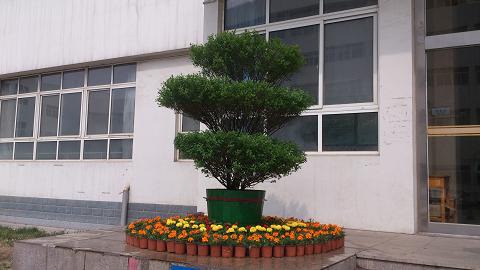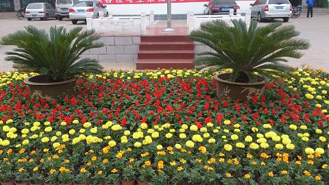 后勤服务总公司今年在各校区大门、逸夫楼A、B区门前、楼宇间、教学楼前、图书馆前、广场旗杆下等校园重要节点共摆花两万余盆。花卉品种以一年生草花为主,主要有:一串红、一品红、万寿菊、孔雀草等,采用鲜花多为红色和黄色,以绿色做摆放主轴,形成高低有致的花境、花带、花丛等花卉装饰特色。