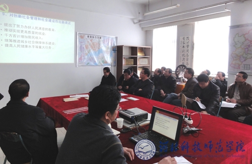2013年4月11日下午,生命科技学院党委按照校党委工作安排和部署,组织全体教师以专题《十八大报告要点与解读》对十八大报告的主要精神和要点进行了解读。 专题辅导围绕十八的基本情况、召开的意义,十八大的主题,十八大报告12个主要部分等重点从11个方面进行讲解。同时针对十八大对党章主要集中在六个方面的修改内容做了重点解读。