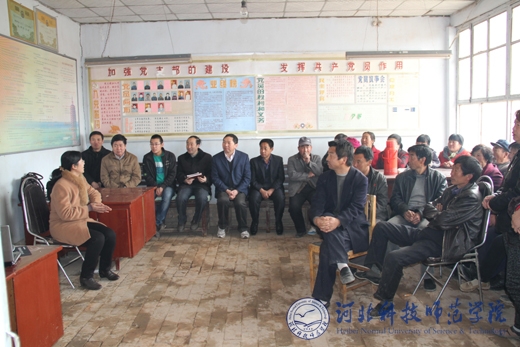 2013年3月28日,我校党委常委李佩国带领园艺科技学院项殿芳院长和毛秀杰博士进驻南董庄村,为村民传授番茄栽培技术,毛秀杰博士将品种选择、种子处理、育苗、田间管理等主要环节的技术措施、实践经验耐心地传授给村民。桃花镇领导、南董庄村与邢家庄村46名村民及驻村工作组成员李佩国、朱天志、杨宗泽、赵建平、常学东、赵维新参加了培训。学校科研处、园艺科技学院对此次活动给予了大力支持。