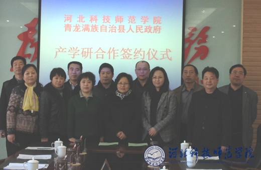 2013年3月13日上午,我校与秦皇岛市青龙县人民政府签订了产学研合作协议。签约仪式在青龙满族自治县人民政府会议室举行。我校副校长杨越冬、科研处副处长闫立英、机电工程学院院长刘荣昌、生命科技学院副院长乔亚科、园艺科技学院副院长齐永顺、食品科技学院副院长康为民、河北省预防兽医学重点实验室副主任史秋梅,青龙县副县长张博威,青龙县科技局领导及部分企业代表出席了签约仪式。仪式由秦皇岛市科技局农业科科长陈燕主持。